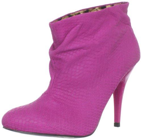 A simple silhouette pairs with a reptile embossed leather upper to create the funky and flattering Gllaam ankle boot from Betsey Johnson Women's. This pull on style bootie features a slouchy shaft complemented by a pointed toe and sky high stiletto for a silhouette that is straightforward and sexy. An exotic animal print lining peeks out of the interior, adding a hint of mystery to your look.Betsey Johnson Women's Gllaam Ankle Boot Features